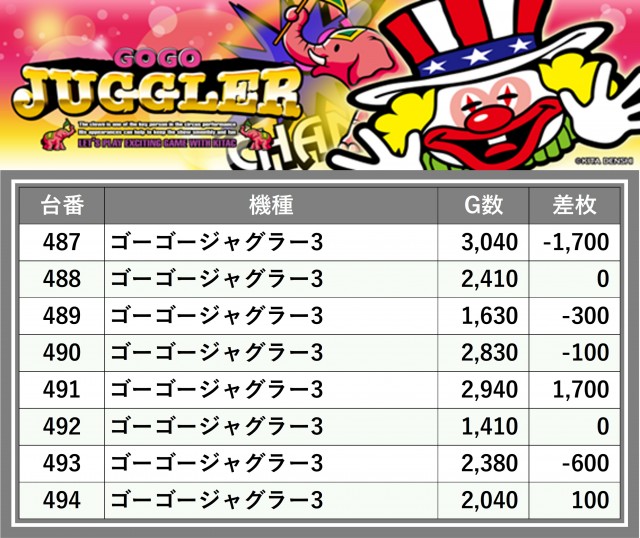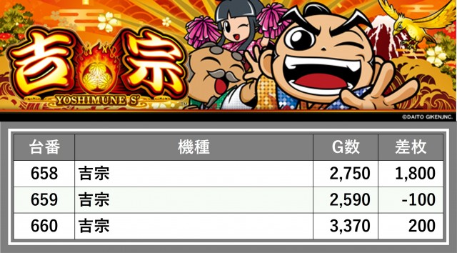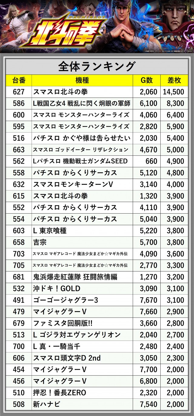 厳選された取材対象機種をはじめ、その他スロット全体から好記録が飛び出した!プレイヤーが楽しんだ1日を下記データにて振り返ってみて欲しい。