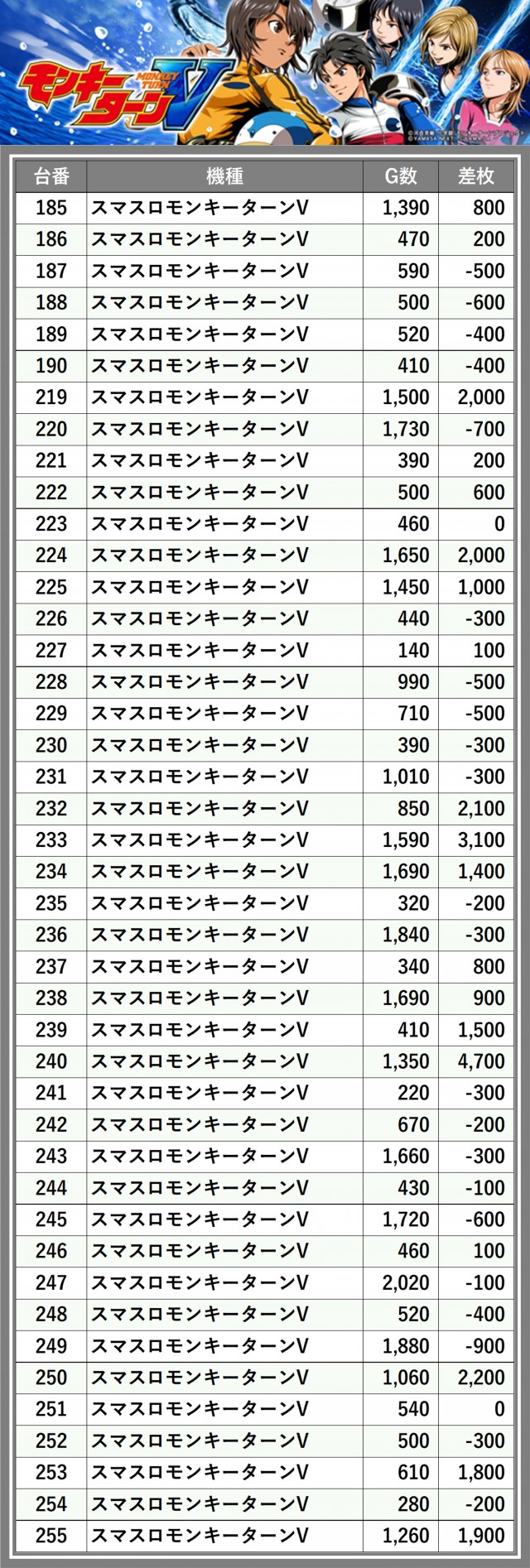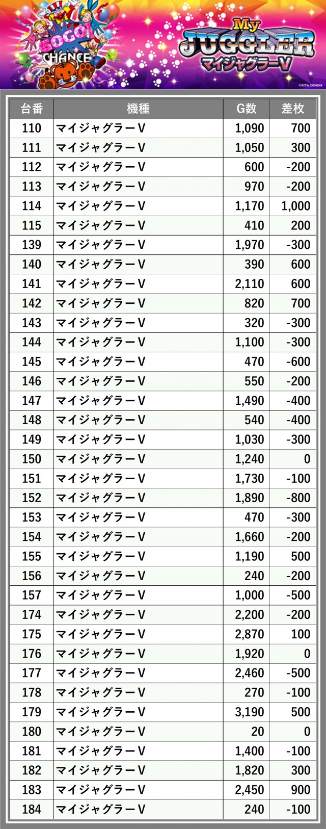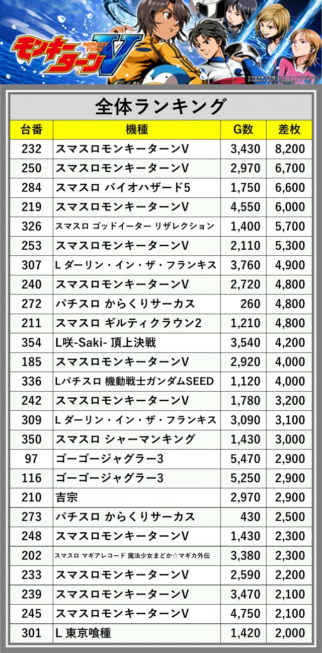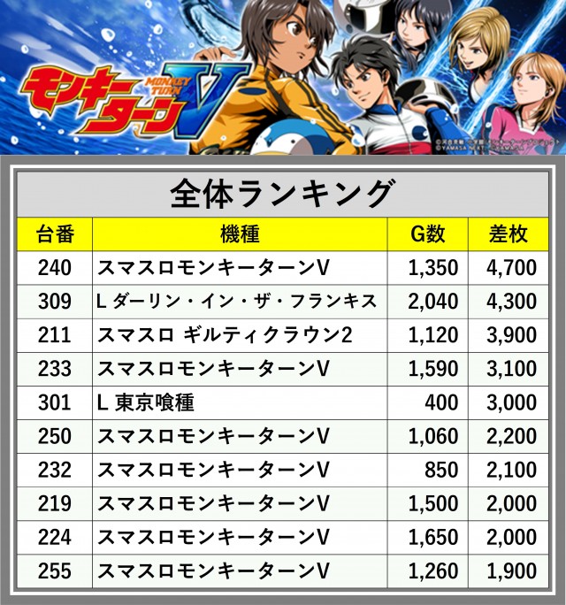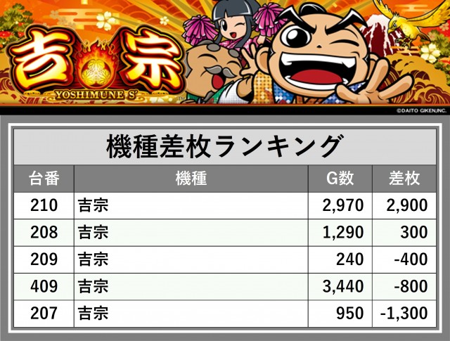 厳選された取材対象機種をはじめ、その他スロット全体から好記録が飛び出した!プレイヤーが楽しんだ1日を下記データにて振り返ってみて欲しい。