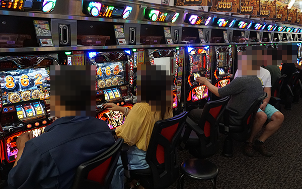 20円パチスロをみてみると、ジャグラーシリーズが大人気。高稼働となっているだけでなく、華麗なパフォーマンスを披露するプレイヤーも目立っていた。