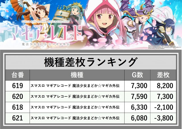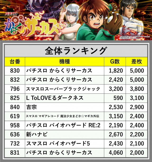 ※差枚数順に掲載しています