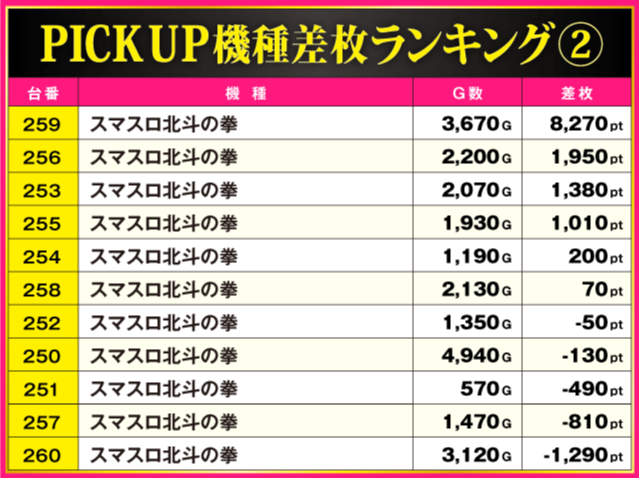 ※差枚pt順に掲載しています。
