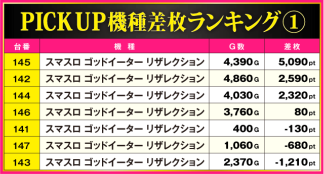 ※差枚pt順に掲載しています。