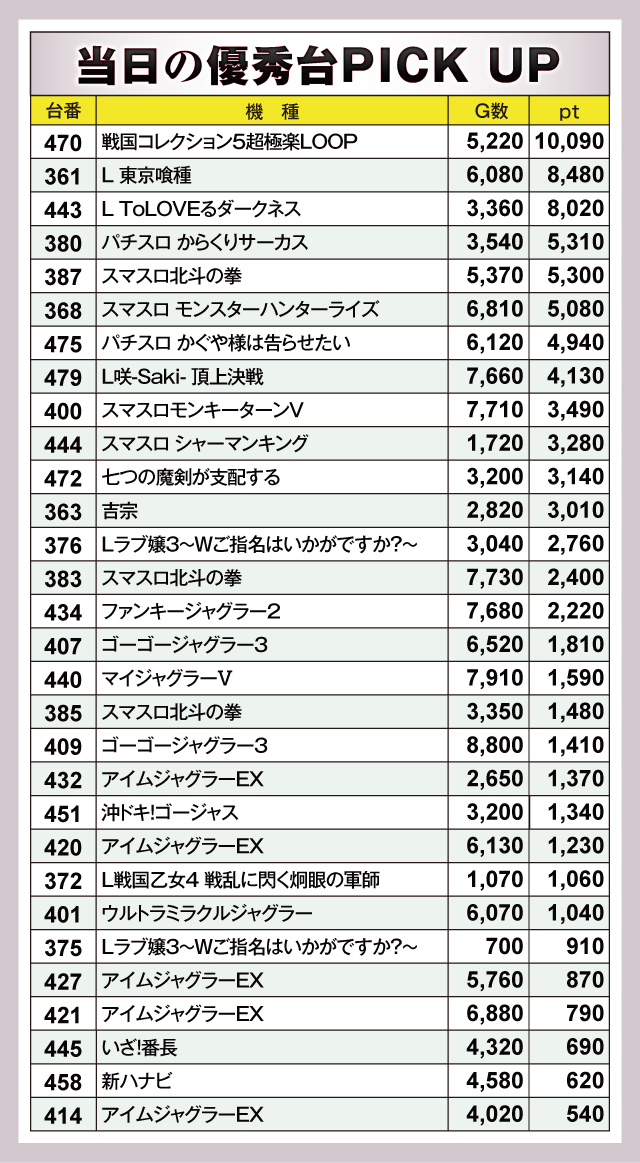 ※差枚pt順に掲載しています。