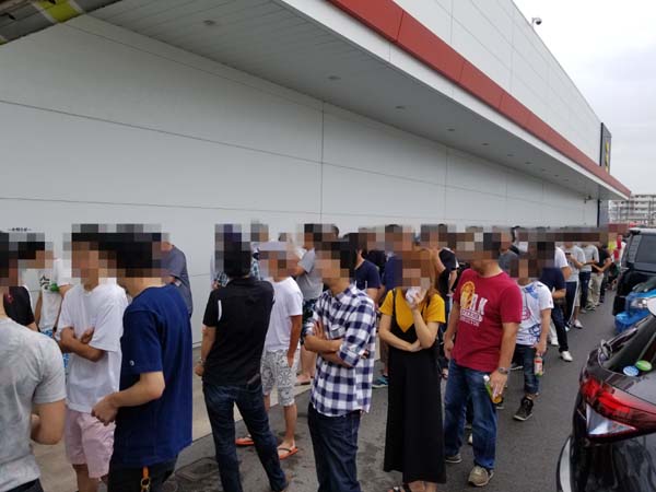朝イチの並びには約500名のプレイヤーが集結。楽しそうに談笑しながらオープンを待つプレイヤーの姿から、同店の支持の厚さが伝わってくる。