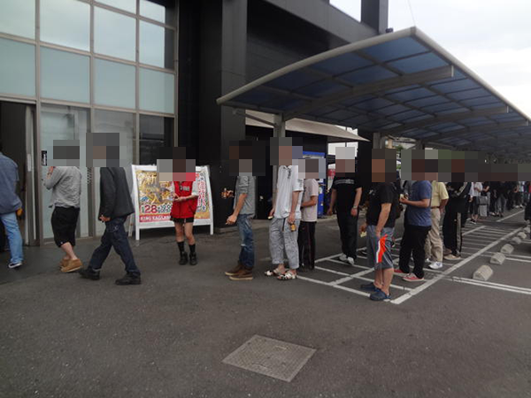 朝の入場抽選に参加したのはおよそ50人。一般入場のプレイヤーも多く、全て合わせると100人ほどが列を作っていた。