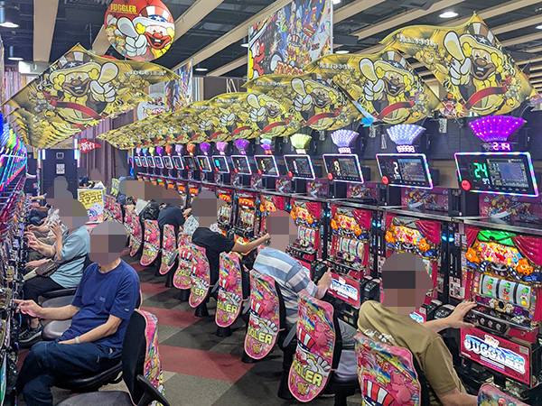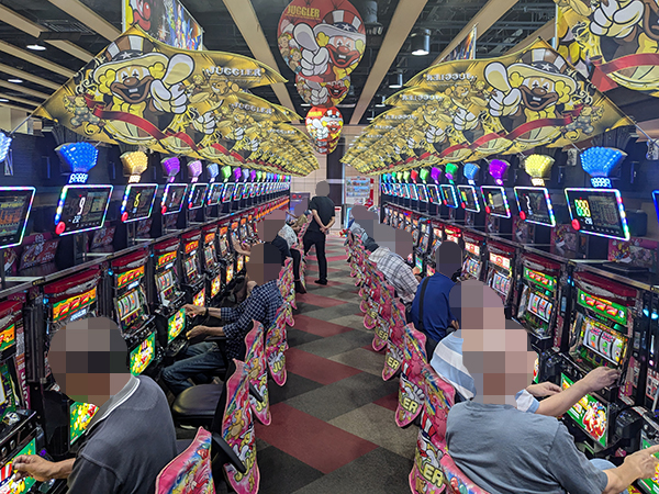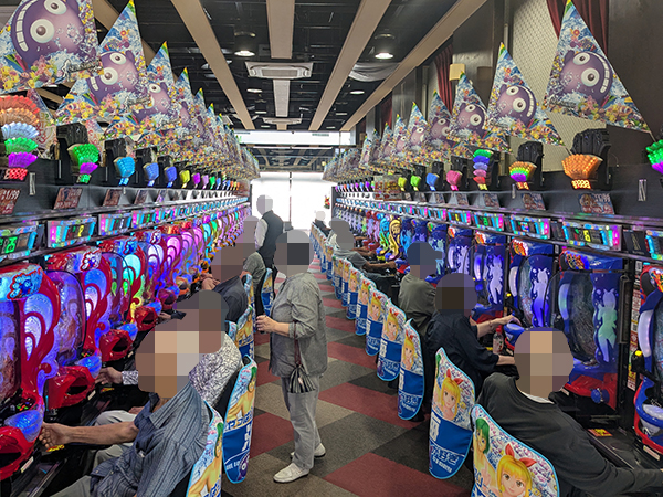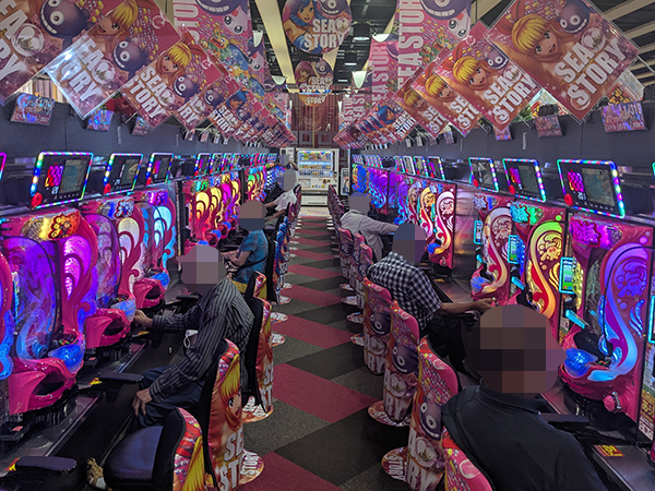 取材時は既に多くのプレイヤーであふれており、パチンコ・パチスロを問わず楽しげな表情でいっぱいだった。