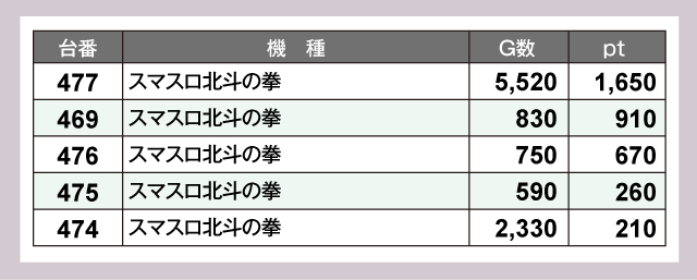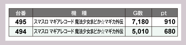 人気の『スマスロ マギアレコード 魔法少女まどか☆マギカ外伝』も十分なG数を回された台がプラスpt。『スマスロ北斗の拳』に関しては稼働が物足りず若干、ポテンシャルを発揮しきれていなかったようだ。