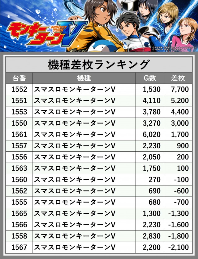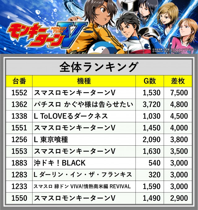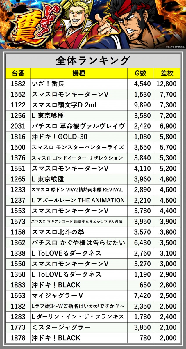 厳選された取材対象機種をはじめ、その他スロット全体から好記録が飛び出した!プレイヤーが楽しんだ1日を下記データにて振り返ってみて欲しい。