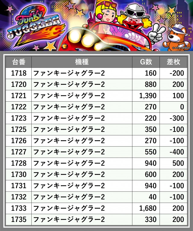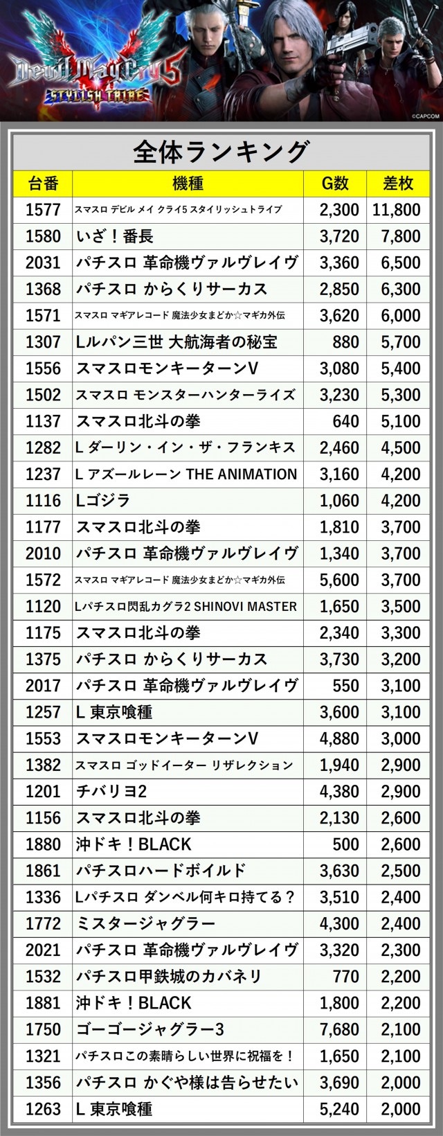 厳選された取材対象機種をはじめ、その他スロット全体から好記録が飛び出した!プレイヤーが楽しんだ1日を下記データにて振り返ってみて欲しい。