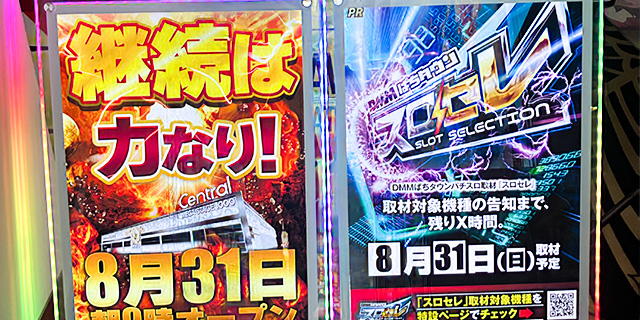 8月31日(日)セントラルMEGASTAGE1000南相馬ジャスモール店にて、DMMぱちタウンの新感覚取材「スロセレ」を実施。