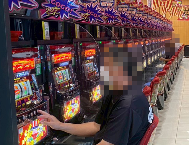 パチスロのシマをまわっていると、「アイムジャグラーEX」で明るい表情をみせているプレイヤーを目撃。