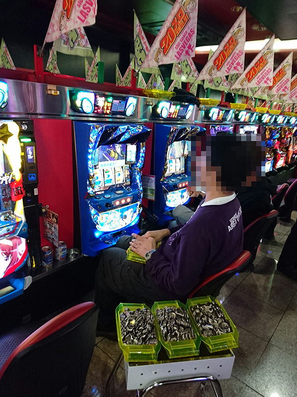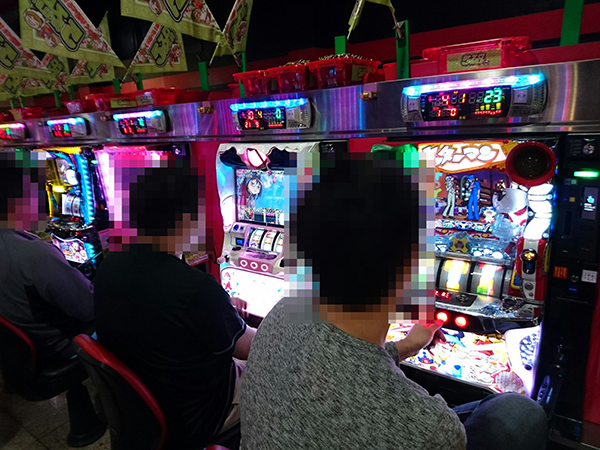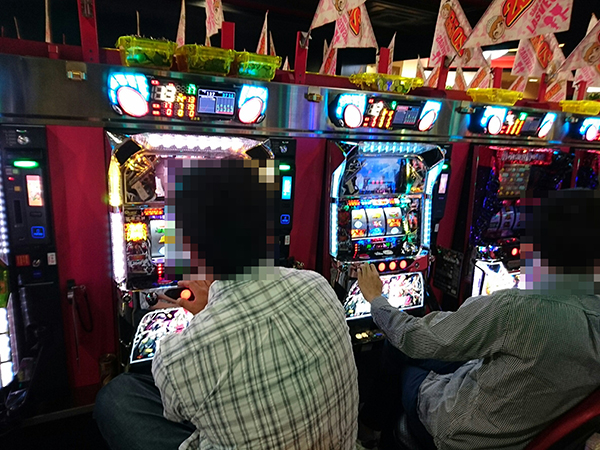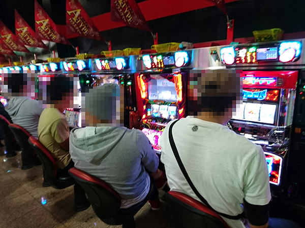 こちらは、1000円/47枚に加えて低貸しの5円パチスロも用意した地元で人気のパチスロ専門店。早速店内に入ると、華やかなシーンをいくつも目撃することができた。