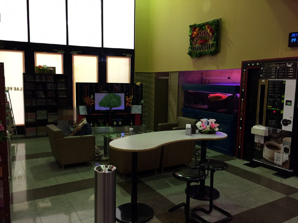 清潔に保たれたレストコーナーには、マンガや雑誌、ソファーのほか熱帯魚が悠々と泳ぐ大きな水槽を設置。快適な環境でゆっくりとくつろぐことができるのは嬉しいポイントだろう。
