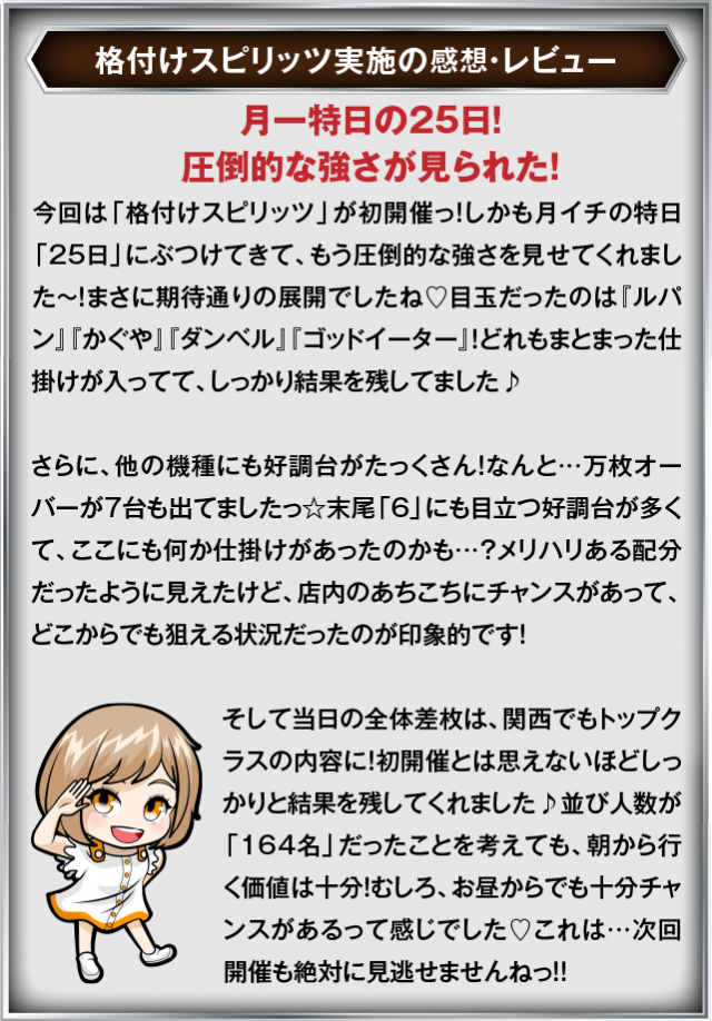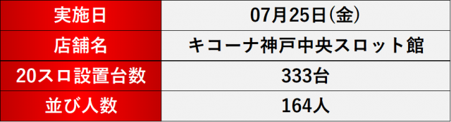 7月25日(金) キコーナ神戸中央スロット館にて、DMMぱちタウンの「格付けスピリッツ」を実施。