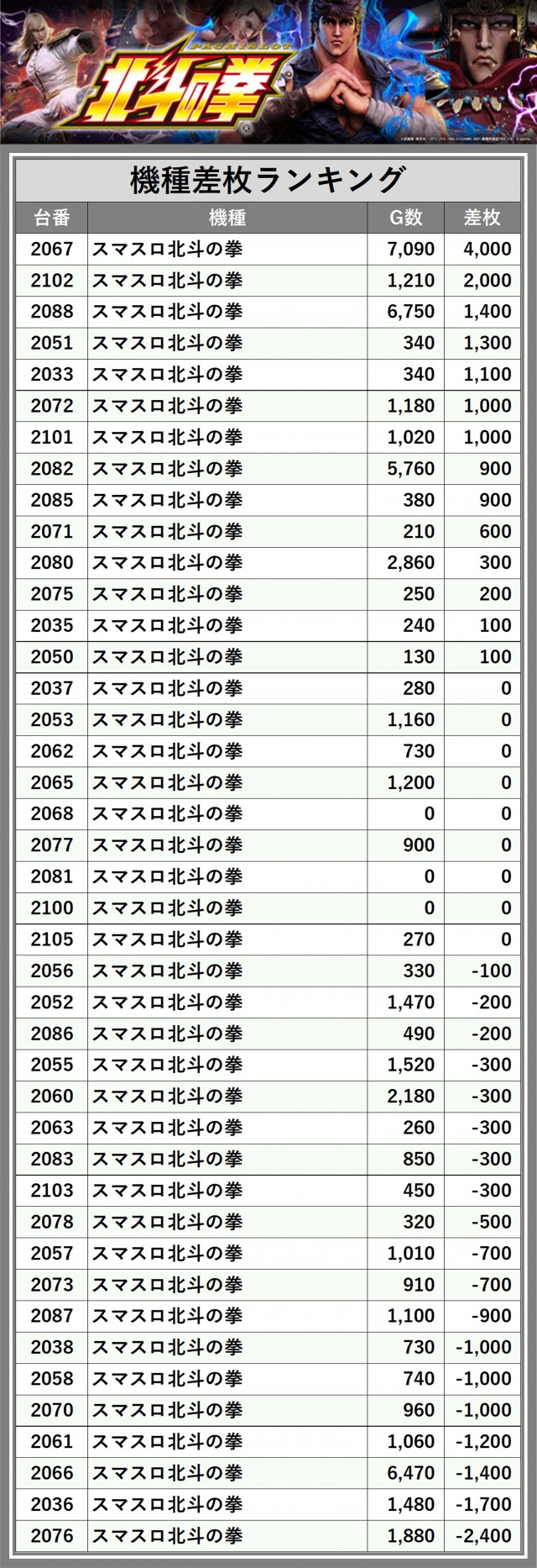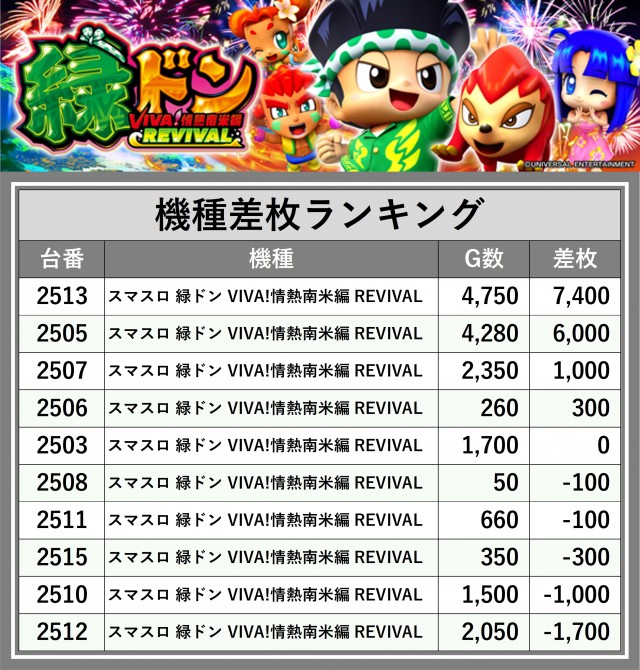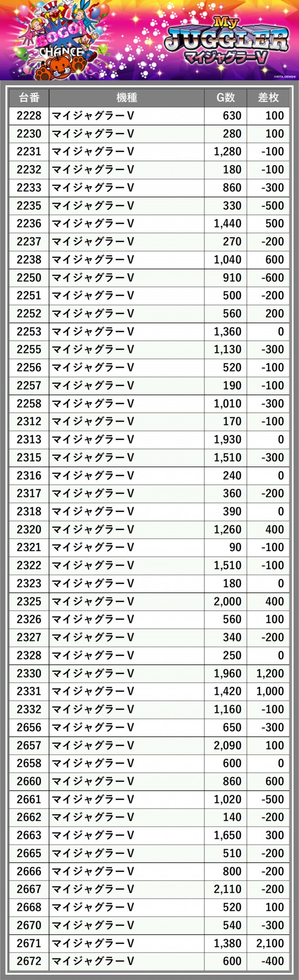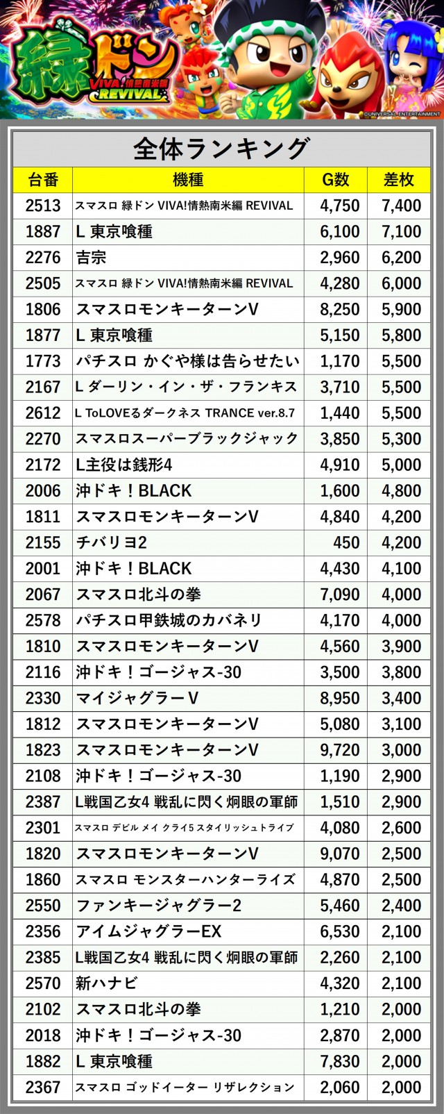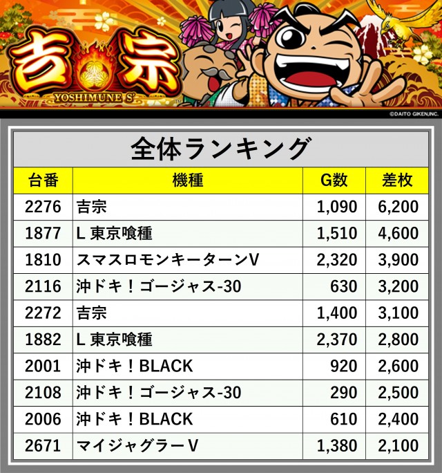厳選された取材対象機種をはじめ、その他スロット全体から好記録が飛び出した!プレイヤーが楽しんだ1日を下記データにて振り返ってみて欲しい。