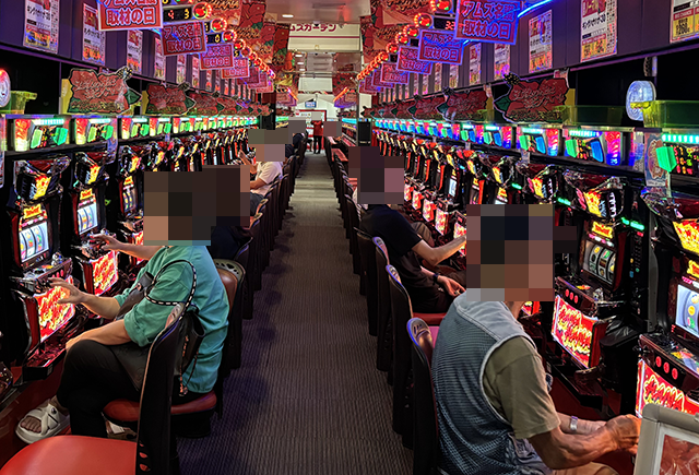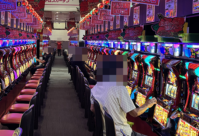 8月1日、沖縄県名護市にある「アムズガーデン名護店」へと向かった。今回の取材は、「華盛り取材」だ。華やかに盛り上がり、ひときわ目立っていた機種を紹介していこう。