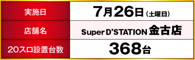 Super D’STATION金古店 差枚ランキング(7月26日)