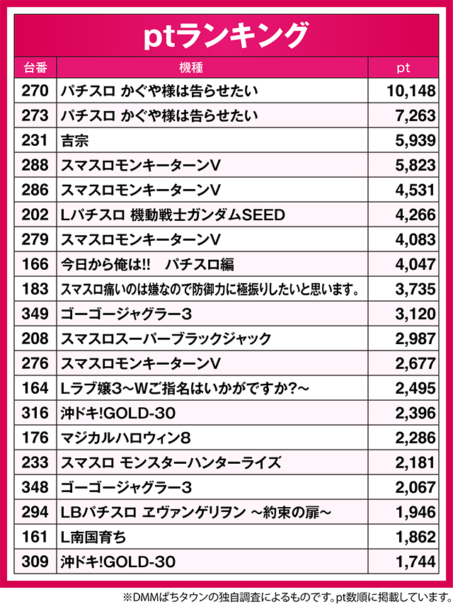 ※なお、本記事中のデータは全てDMMぱちタウンの独自調査によるものです
