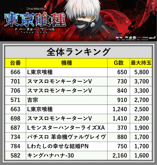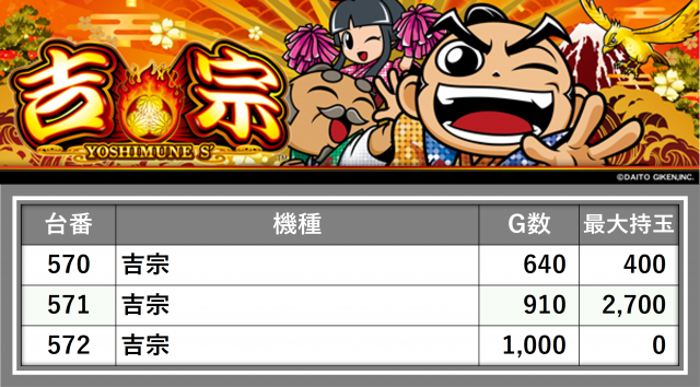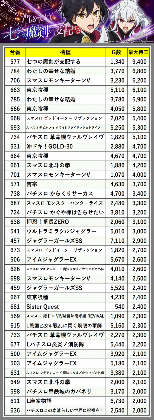 厳選された取材対象機種をはじめ、その他スロット全体から好記録が飛び出した!プレイヤーが楽しんだ1日を下記データにて振り返ってみて欲しい。