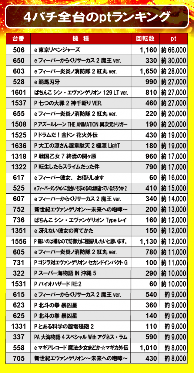 ②4パチ全台のptランキング