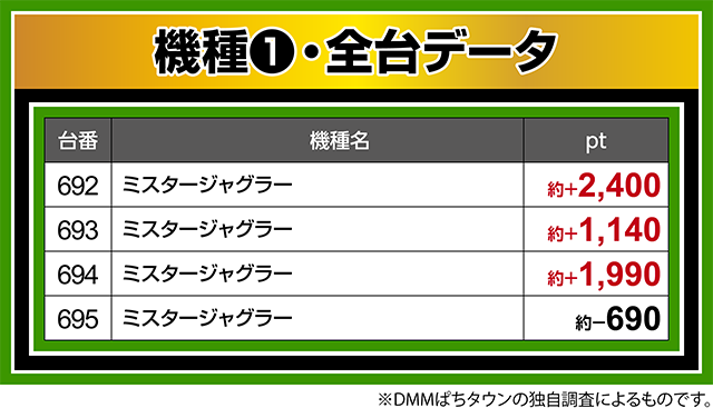 『ミスタージャグラー』の692番台が約+2,400pt!