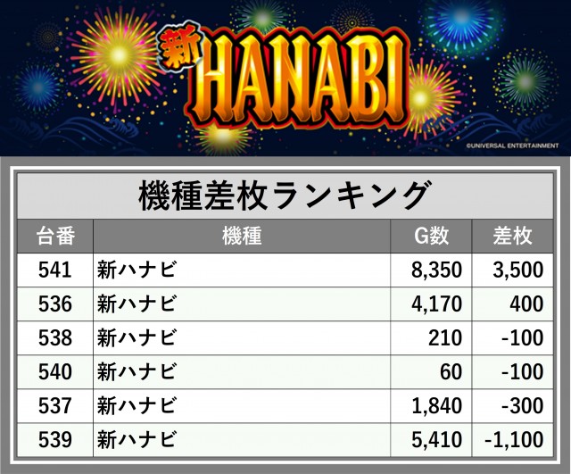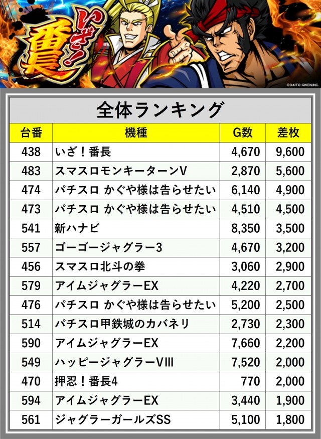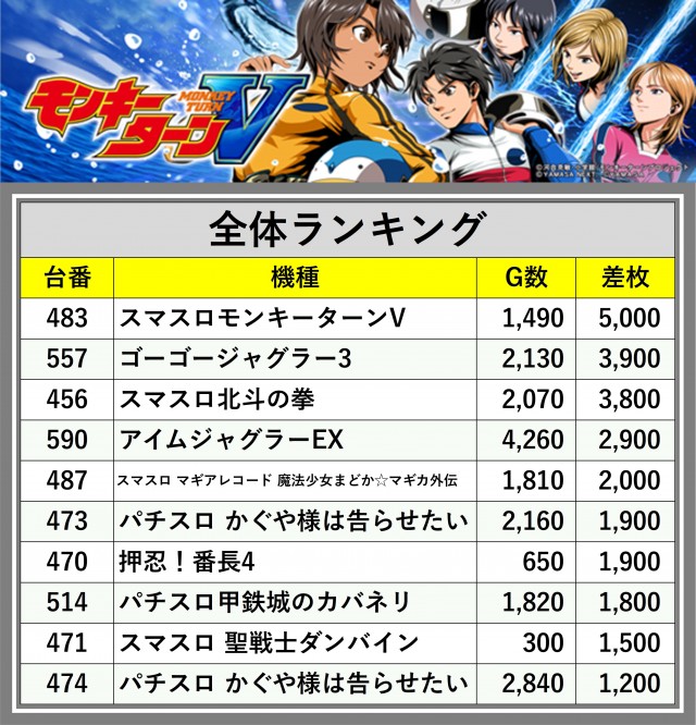 ※差枚数順に掲載しています