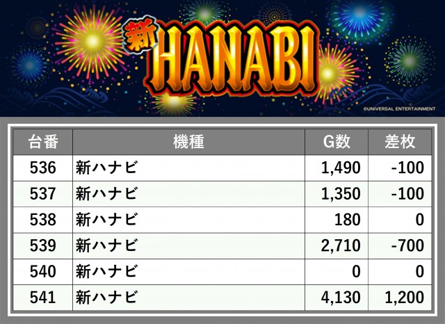 ※台番順に掲載しています