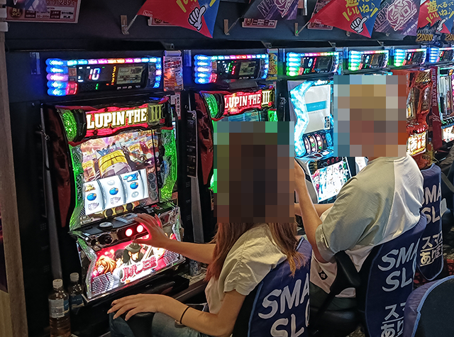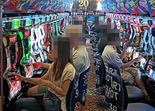 7月27日、青森県八戸市にある「大東パチンコ」へと向かった。今回の取材は、「アルティメットスロット」だ。パチスロをみると、スマスロなどに活気のある景色が広がっていた。