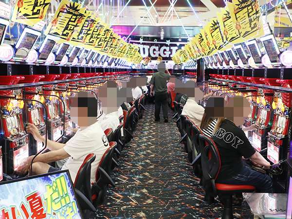 プレイヤーでにぎわう店内を見渡すと、パチンコ・パチスロともに明るい雰囲気が漂っていた。