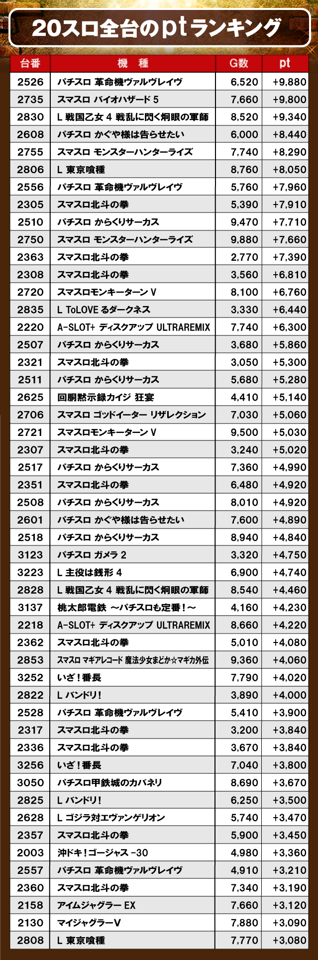 ③PICK UP機種のptランキング