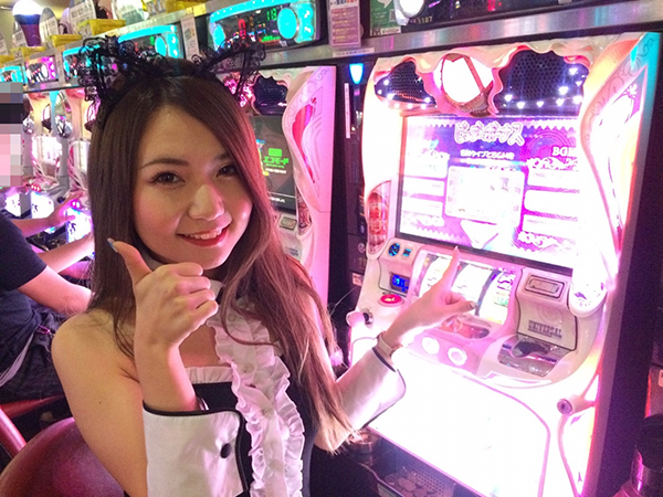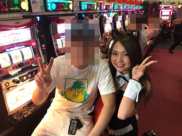 機種の魅力はしっかりと堪能できているようで、ニコニコと楽しそうに打っています。