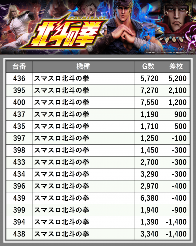 厳選された取材対象機種をはじめ、その他スロット全体から好記録が飛び出した!プレイヤーが楽しんだ1日を下記データにて振り返ってみて欲しい。