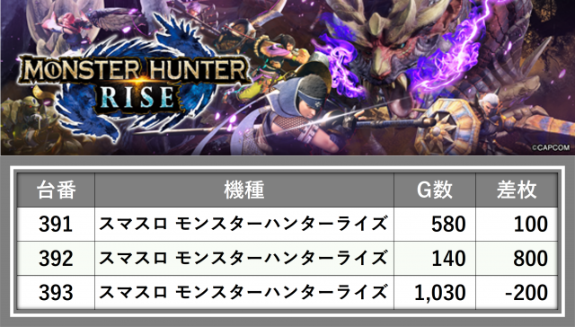 厳選された取材対象機種をはじめ、その他スロット全体から好記録が飛び出した!プレイヤーが楽しんだ1日を下記データにて振り返ってみて欲しい。