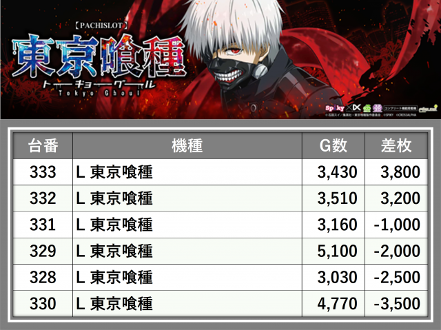 ※台番順に掲載しています