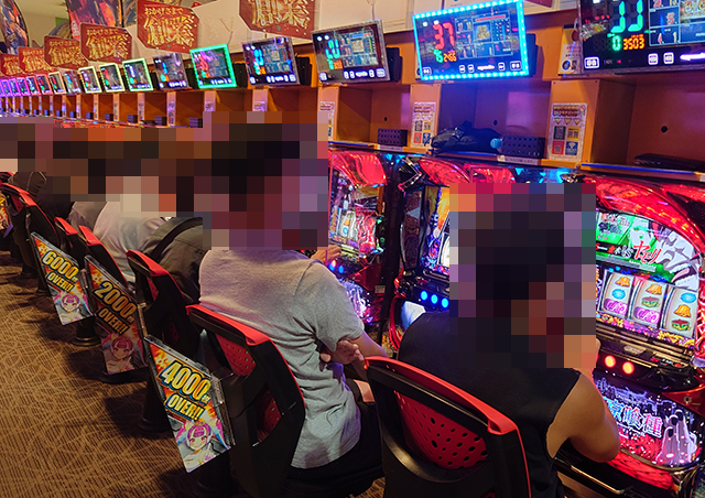 「スマスロモンキーターンV」は9割以上が埋まり、うれしそうに遊技をおこなっている姿が並んでいた。