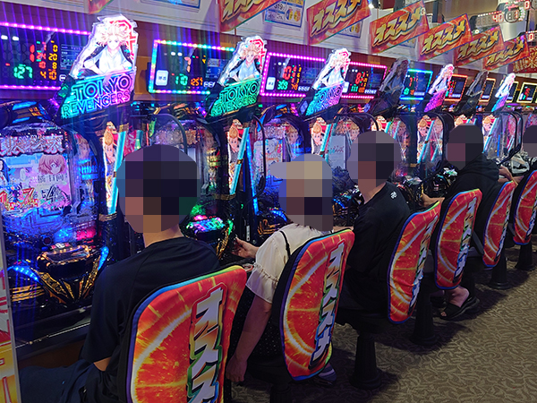 14時半ごろの4.34円パチンコでは「e東京リベンジャーズ」や「e牙狼12黄金騎士極限」が盛況で、機種のポテンシャルをフルに活かすプレイヤーを複数確認している。