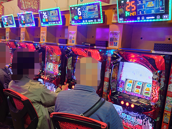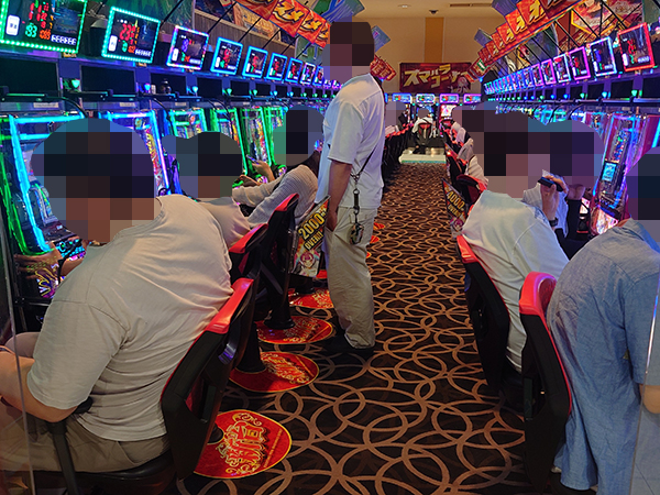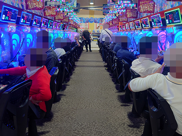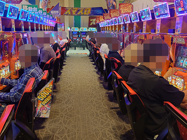 取材時は既に多くのプレイヤーが集結し、パチンコ・パチスロを問わずにぎやかな状況となっていた。