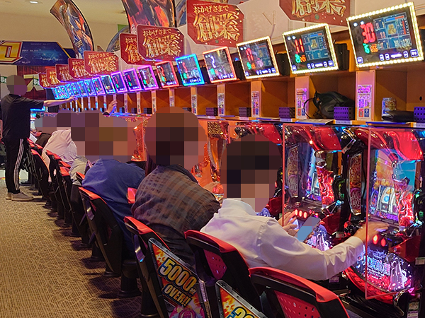 店内には老若男女を問わずプレイヤーが集合。パチンコ・パチスロの各シマから活気が感じられた。