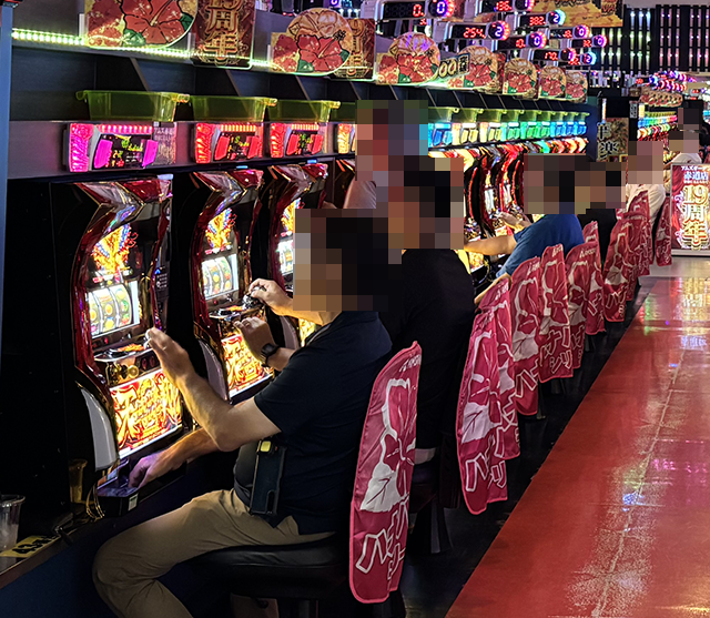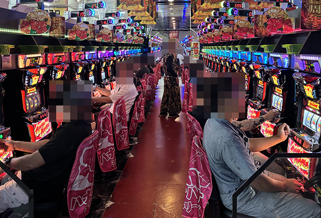 8月23日、沖縄県うるま市にある「アムズガーデン赤道店」へと向かった。今回の取材は、「華盛り取材」だ。明るい雰囲気の店内は、ハナハナシリーズなど多くの機種に笑顔があった。
