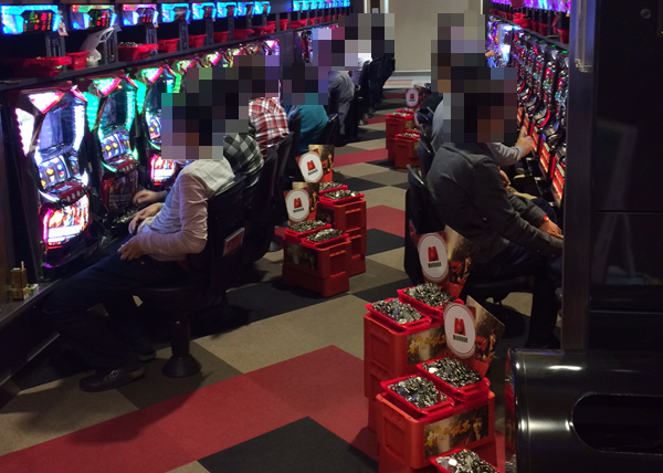 開店直後のパチスロコーナーをみると、「パチスロ ゴッドイーター」や「ミリオンゴッド-神々の凱旋-」といった機種がプレイヤーからの支持を集めていた。
