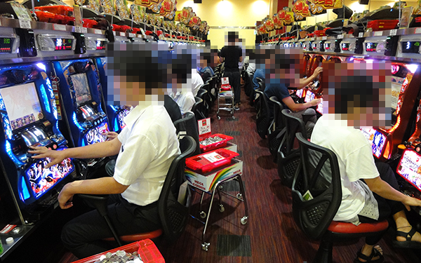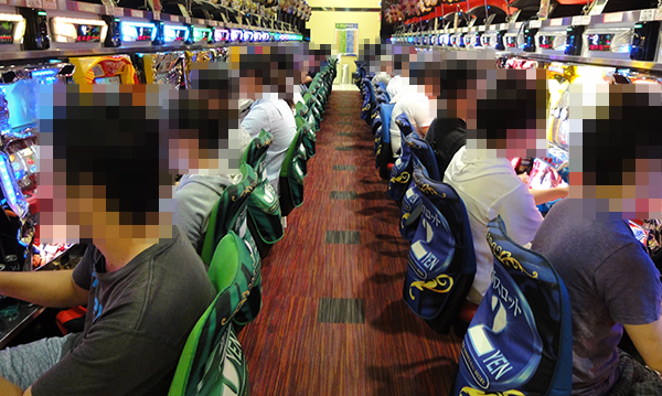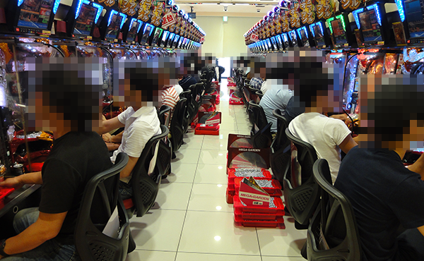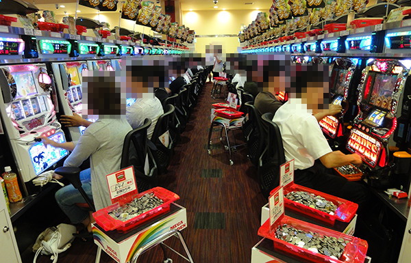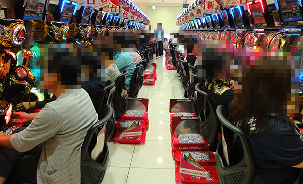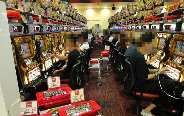 パチンコとパチスロのどちらも、たくさんのプレイヤーでにぎわっていた。