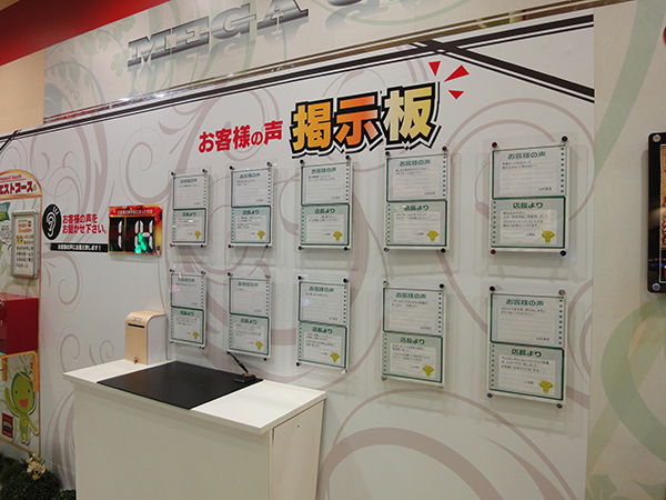 ホール内にはプレイヤーからの意見が貼り出されており、改善したポイントもしっかりとカウントしている。つねにより良いホールを目指す姿勢にも好感を抱いた。
