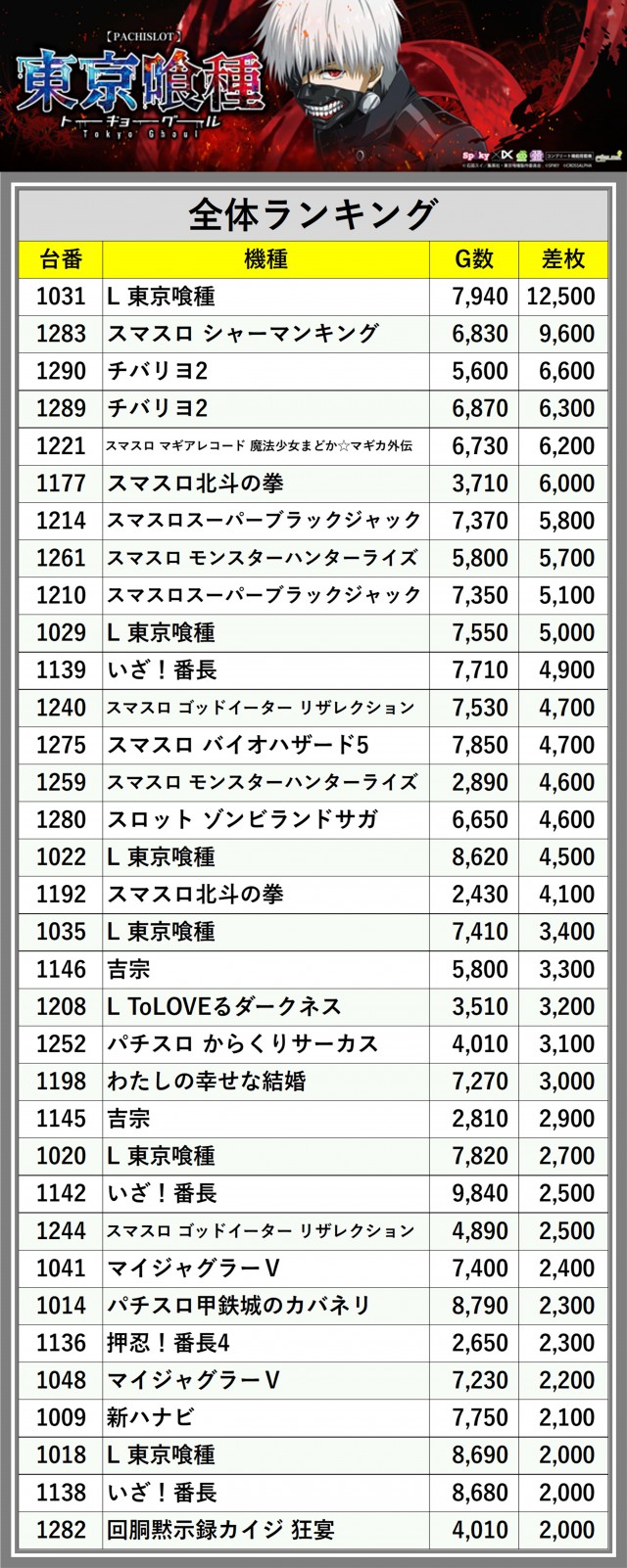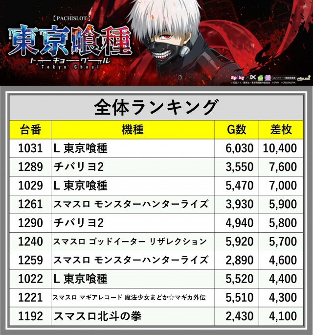 厳選された取材対象機種をはじめ、その他スロット全体から好記録が飛び出した!プレイヤーが楽しんだ1日を下記データにて振り返ってみて欲しい。