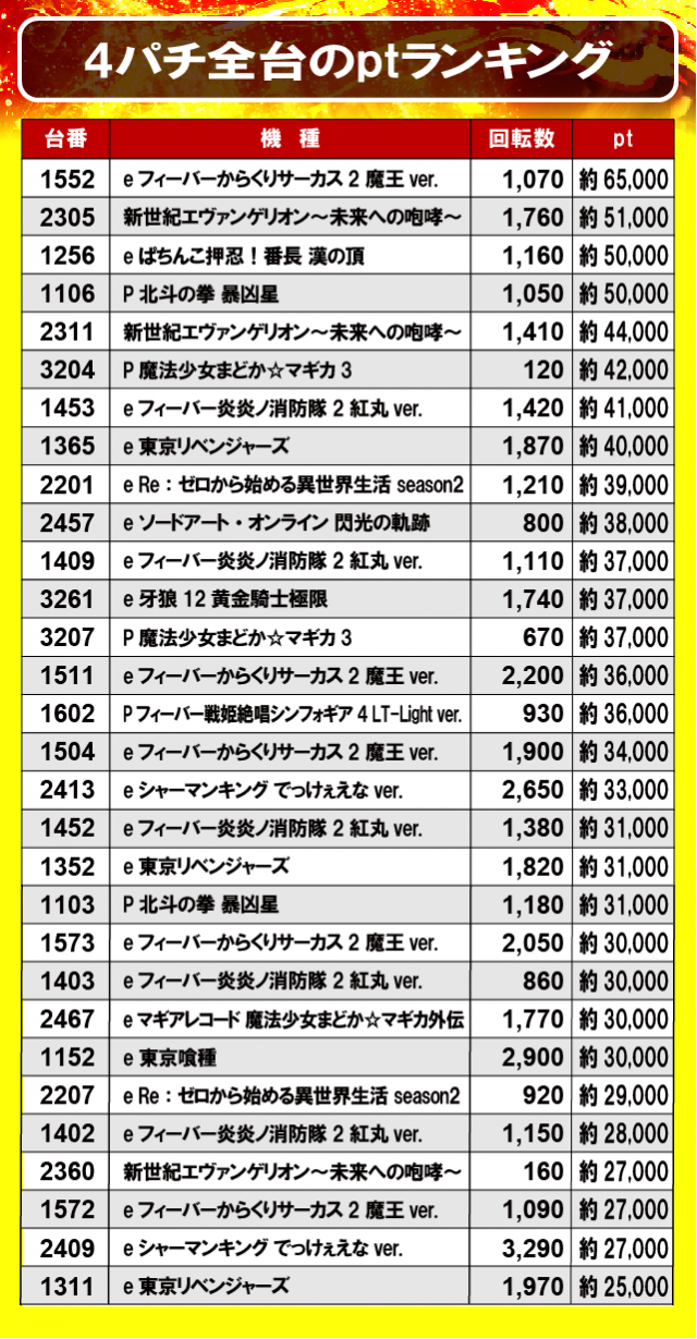 ②4パチ全台のptランキング