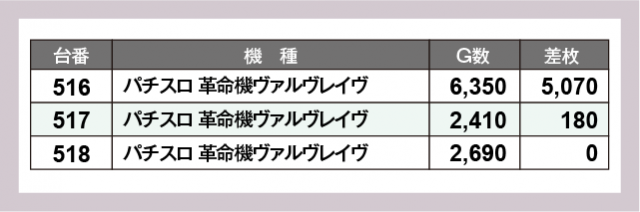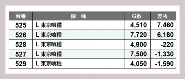 ※差枚数順に掲載しています