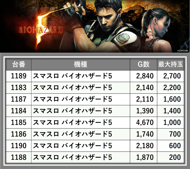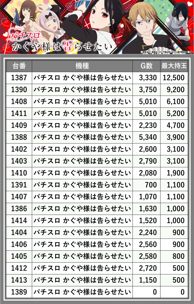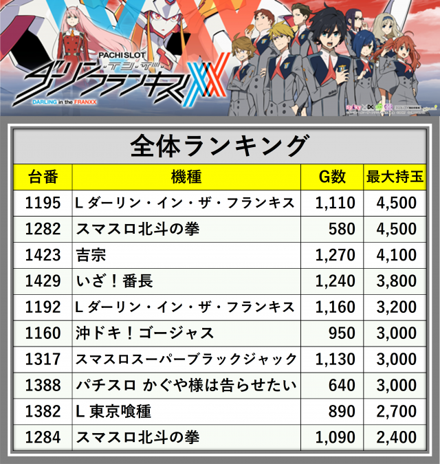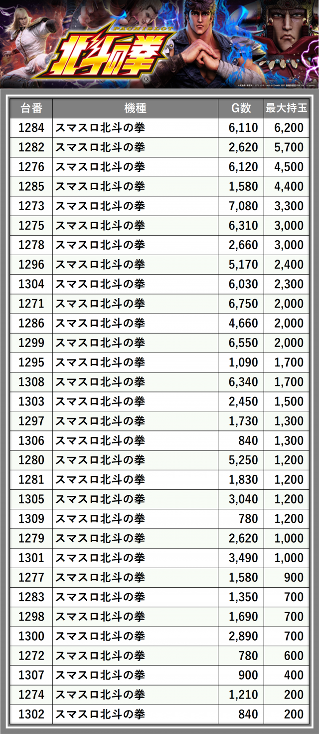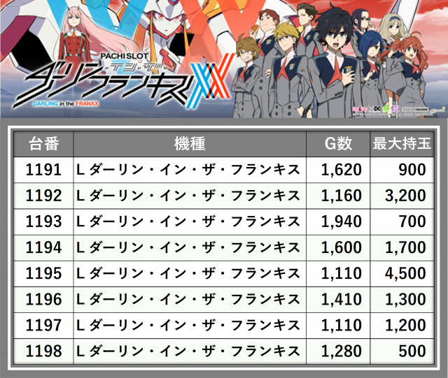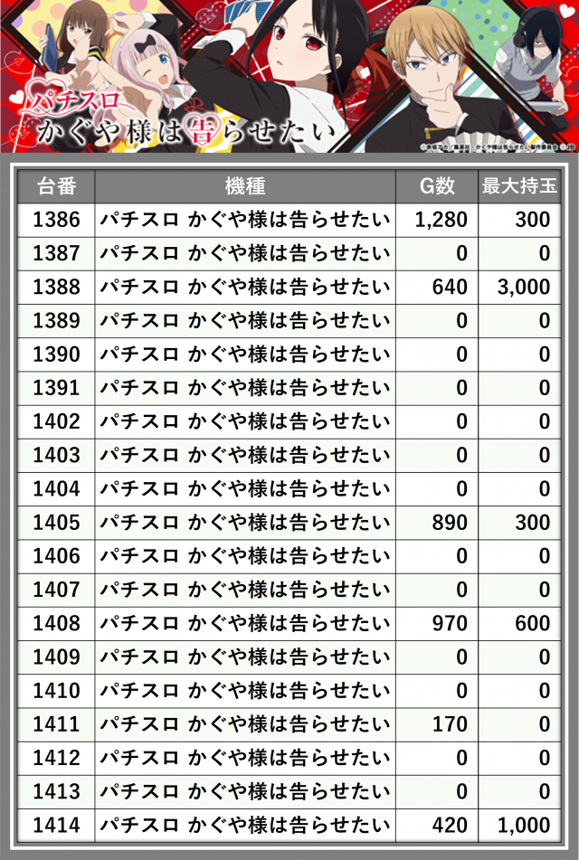 ※台番順に掲載しています