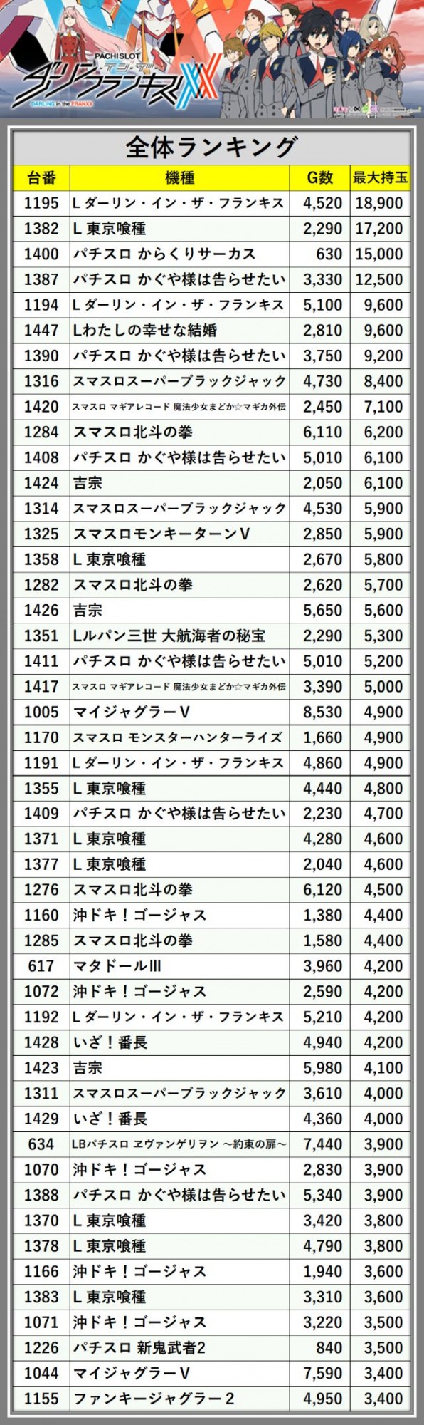 ※最大持玉数順に掲載しています