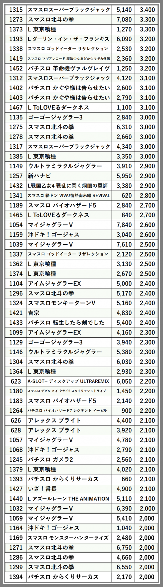 厳選された取材対象機種をはじめ、その他スロット全体から好記録が飛び出した!プレイヤーが楽しんだ1日を下記データにて振り返ってみて欲しい。