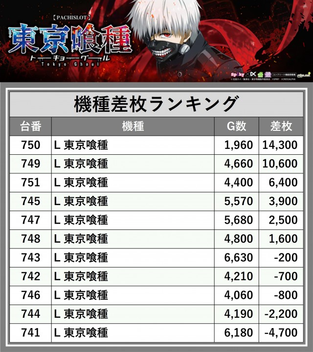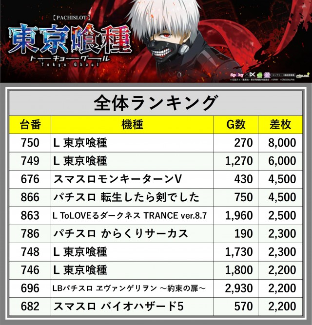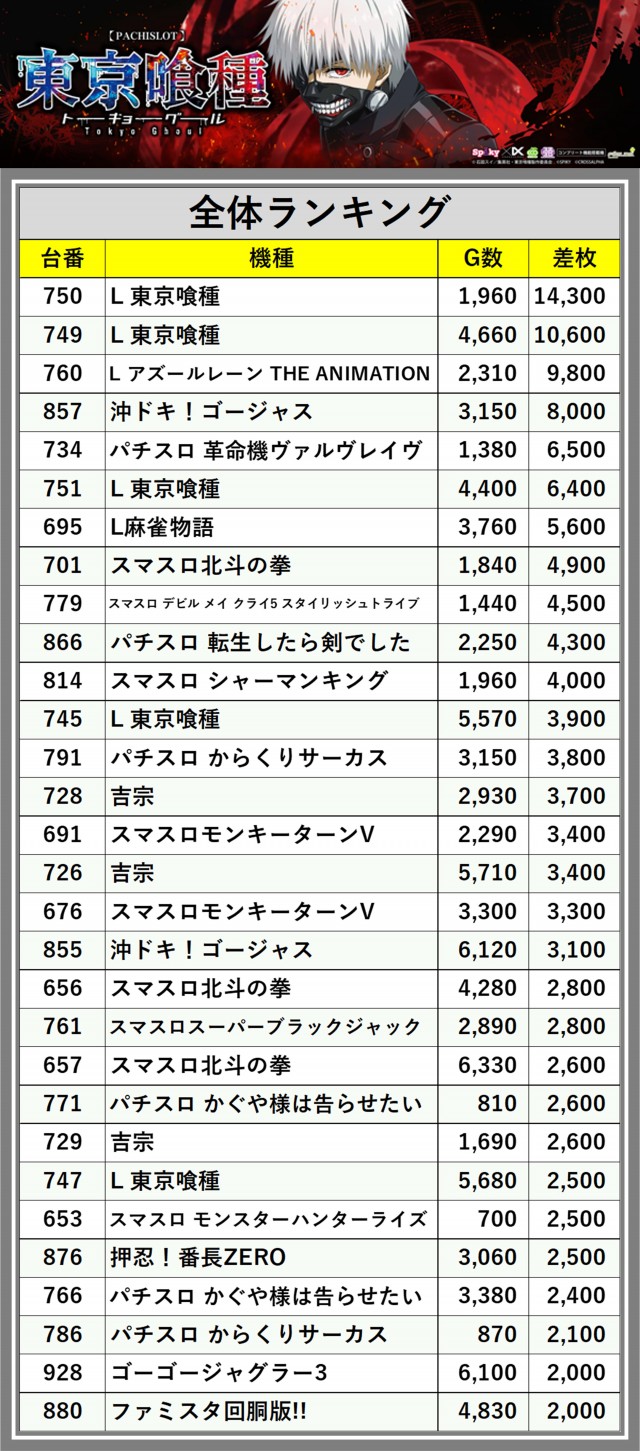 ※差枚数順に掲載しています
