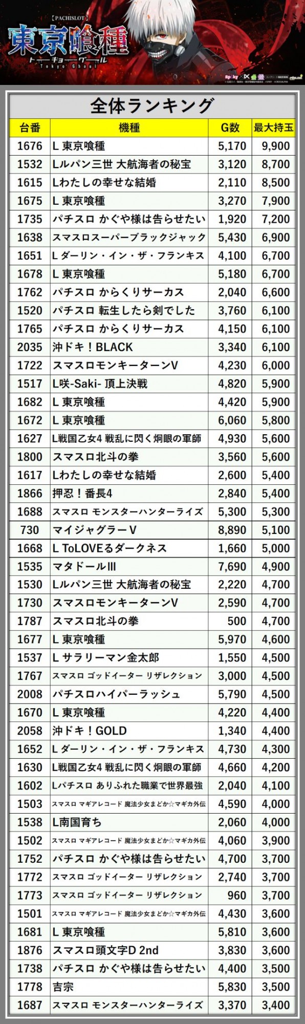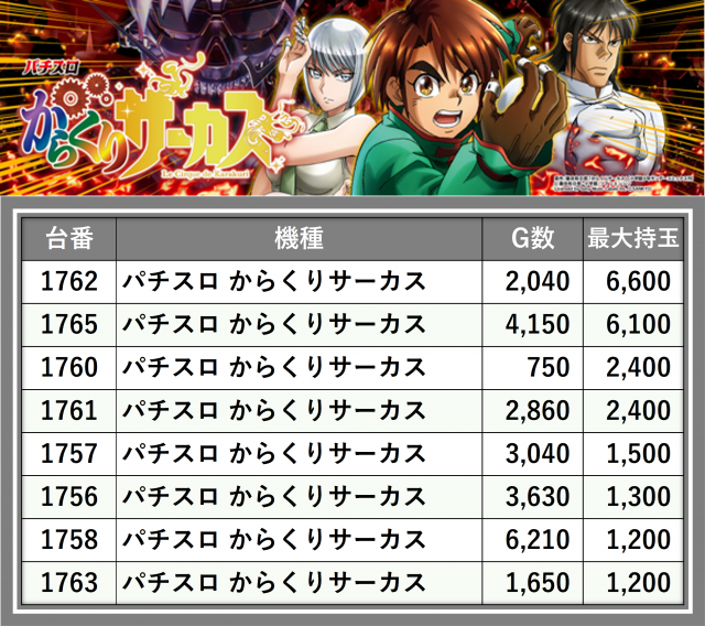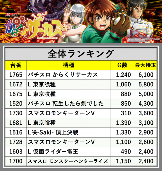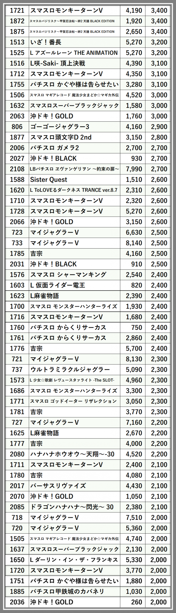 厳選された取材対象機種をはじめ、その他スロット全体から好記録が飛び出した!プレイヤーが楽しんだ1日を下記データにて振り返ってみて欲しい。